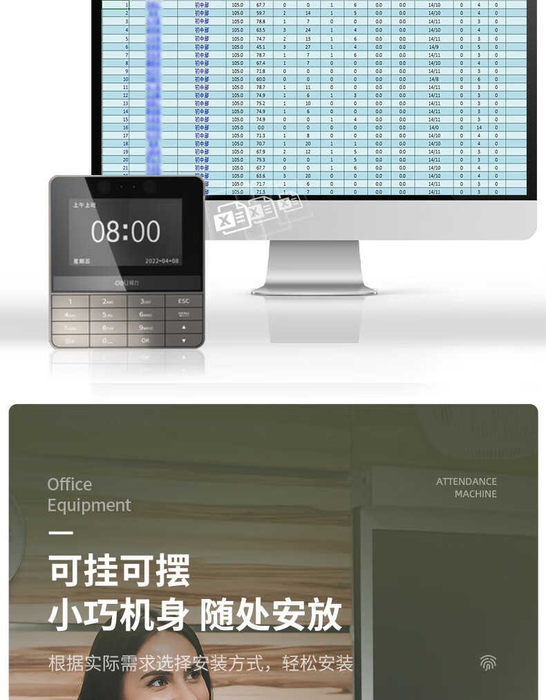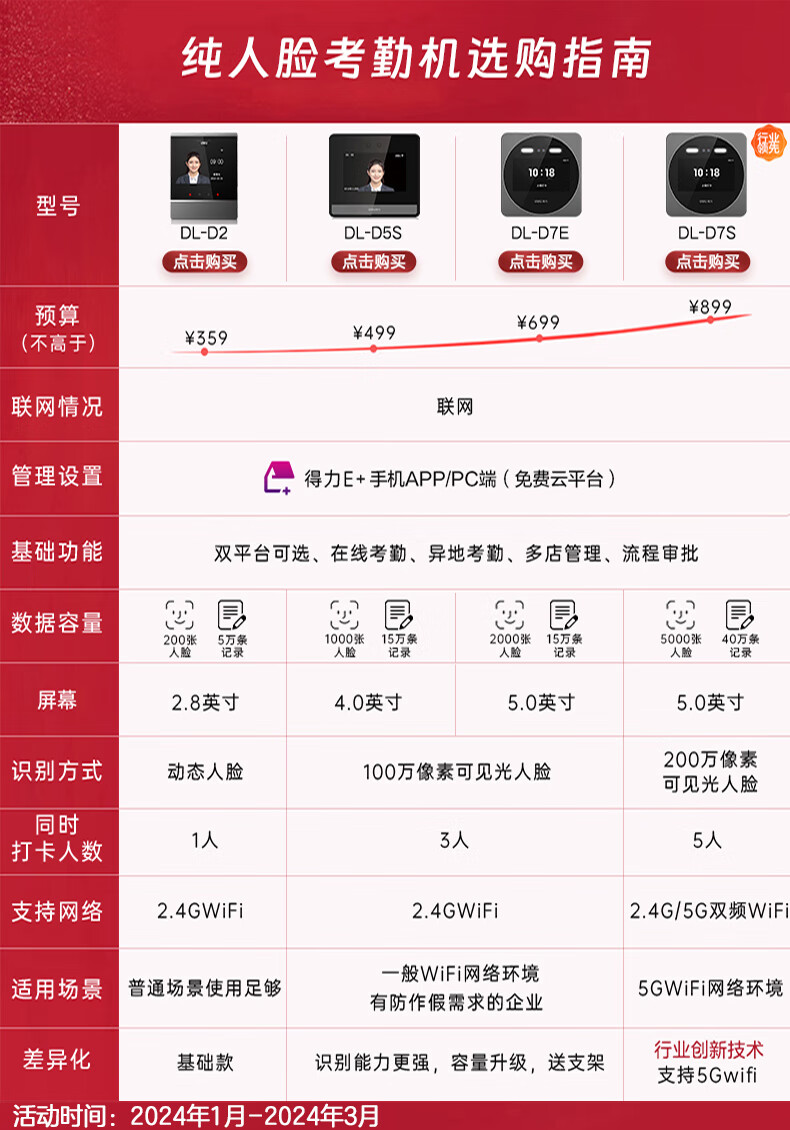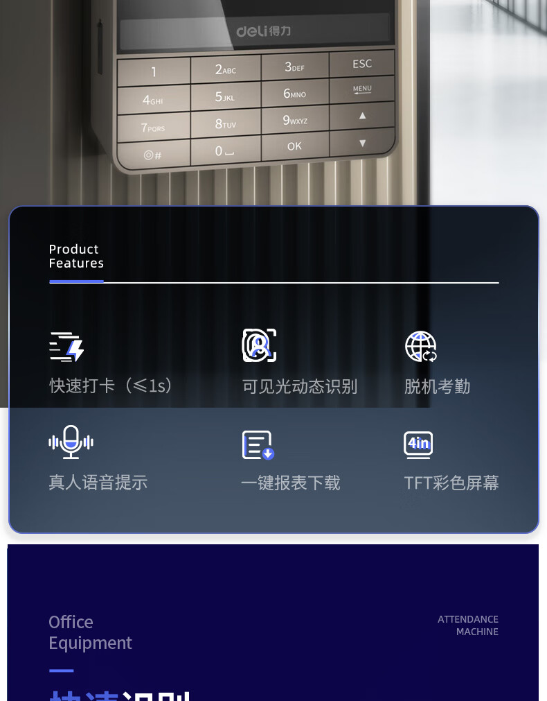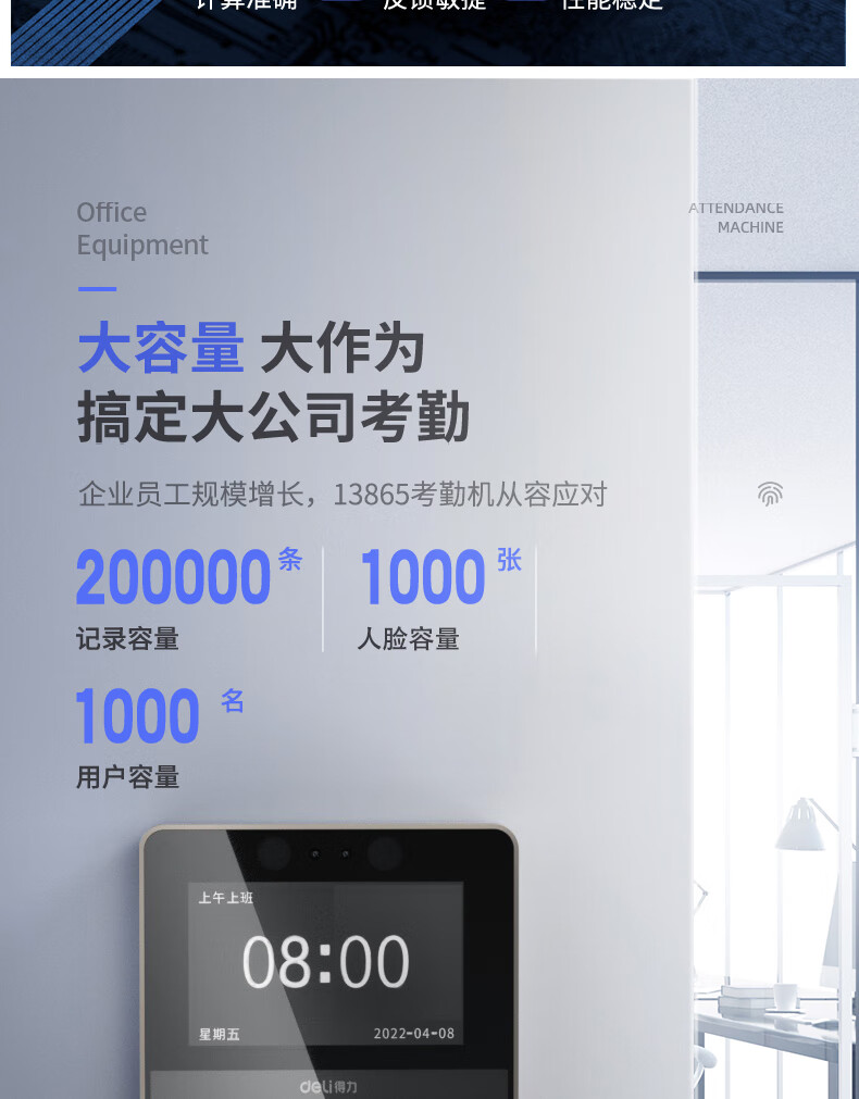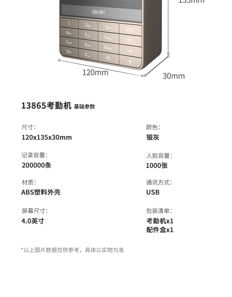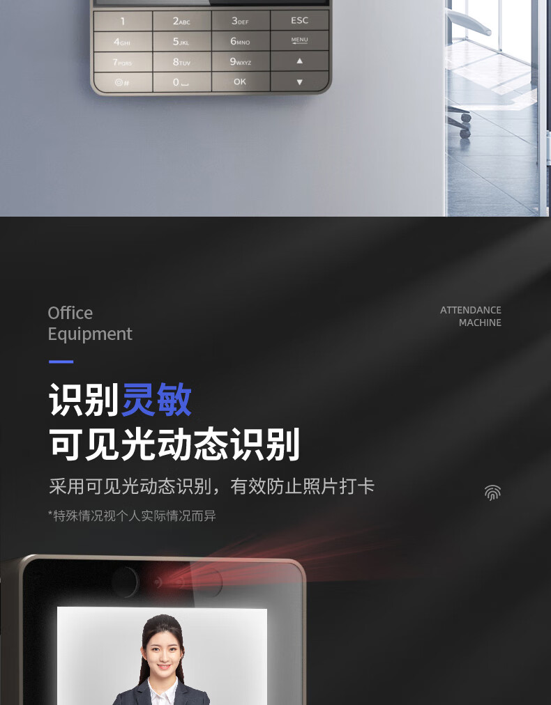 得力(deli)人脸识别考勤机无接触打卡机签到机可见光动态识别防照片视频打卡一键导出报表13865 自营
