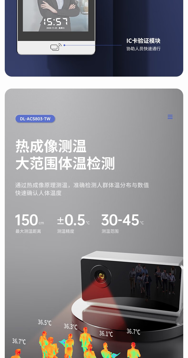 得力(deli)人脸识别测温门禁考勤一体机医院学校写字楼快速测温识别仪DL-ACS502-TW【5英寸】门禁测温考勤机官方标配:单考勤机 自营