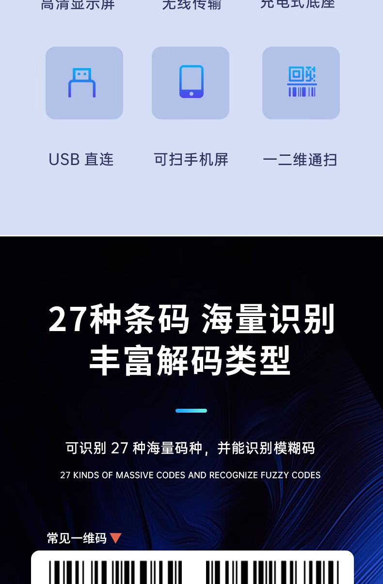 得力扫码枪扫码扫描枪无线扫描器条码扫描二维码收银收款码快递物流备件仓库充电底座14970W白 自营