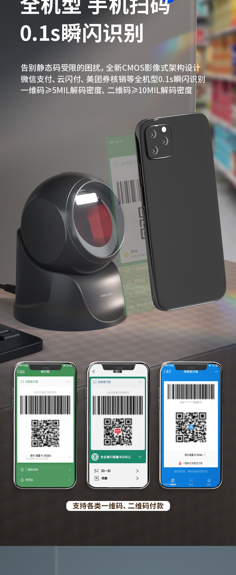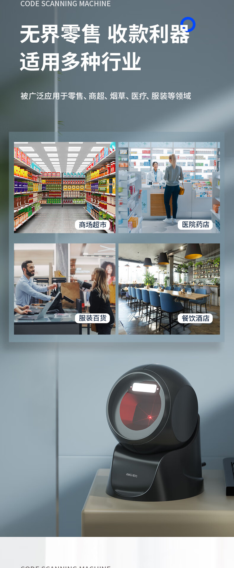 得力扫码枪扫描器扫码扫描枪收银收款器扫描平台盒子快递物流超市仓库备件二维码扫码器14963 自营