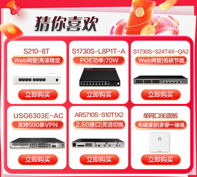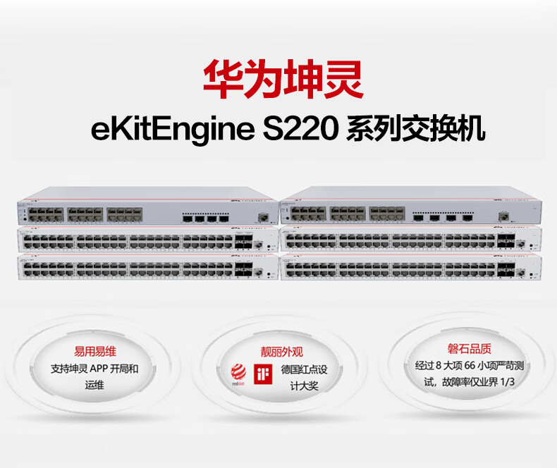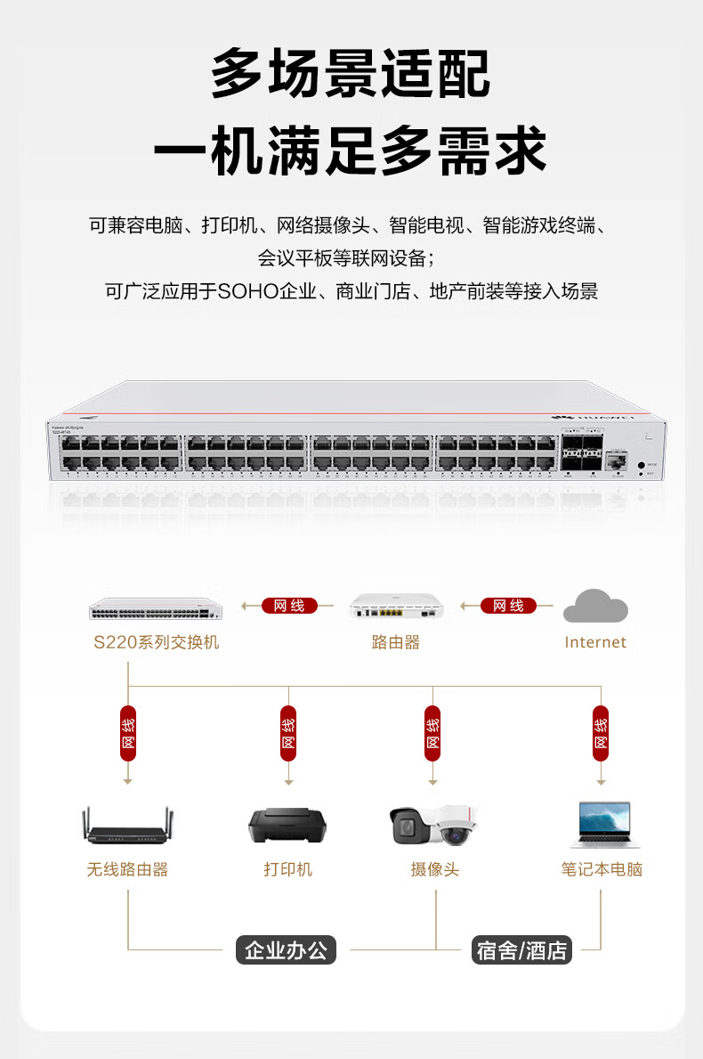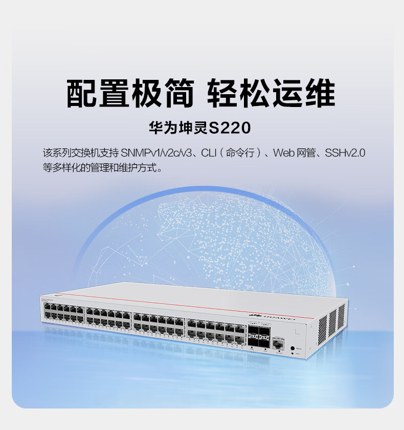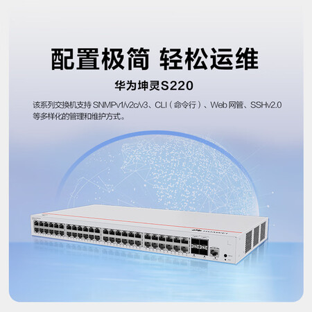 华为交换机48口千兆电+4口千兆光web管理接入交换机企业级网络管理S220-48T4S 自营