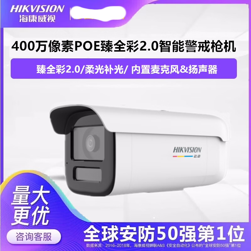 海康400W全彩简式网络摄像机DS-2CD2T47SWDV3-L 自营