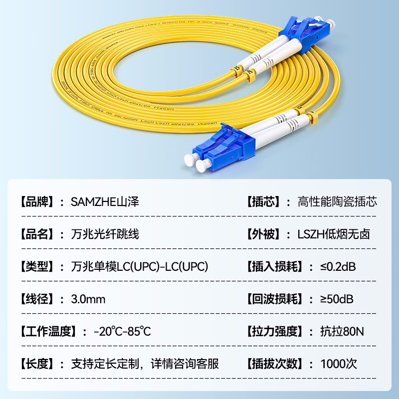 山泽(SAMZHE) 光纤跳线电信级LC-LC LC-FC LC-SCST单模双芯 单模双芯 3米 自营