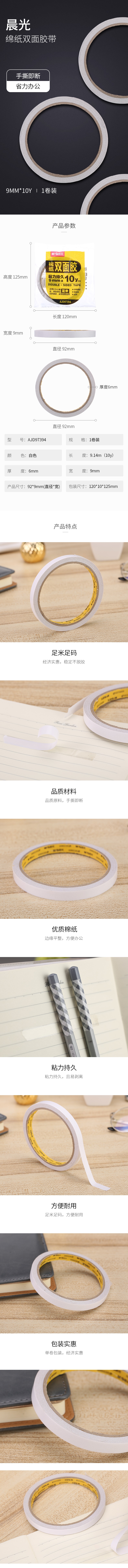 晨光双面棉纸胶带9mm*10y(单卷)AJD97394 自营