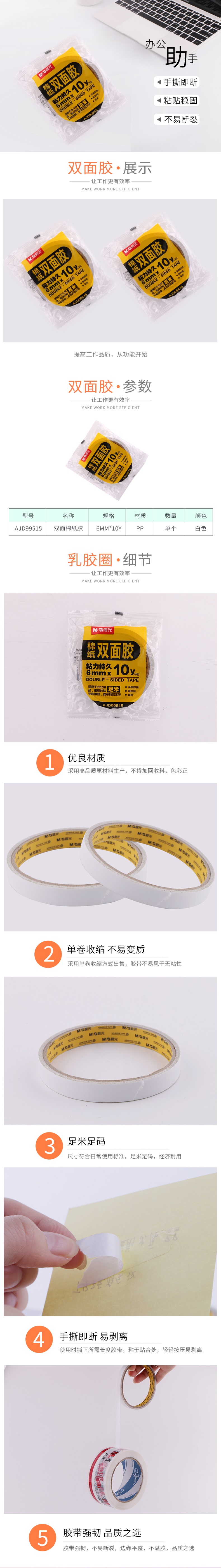 晨光双面棉纸胶带6mm*10y(两卷)AJD99515 自营