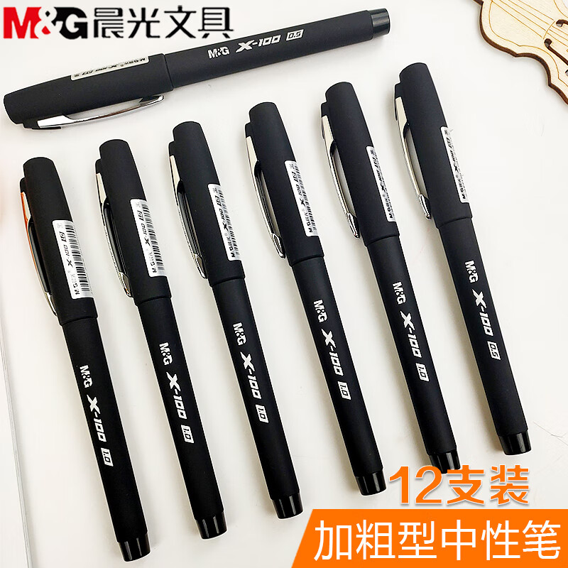■晨光中性笔X100/X200系列加粗0.5mm--黑色12支装(v8601) 自营