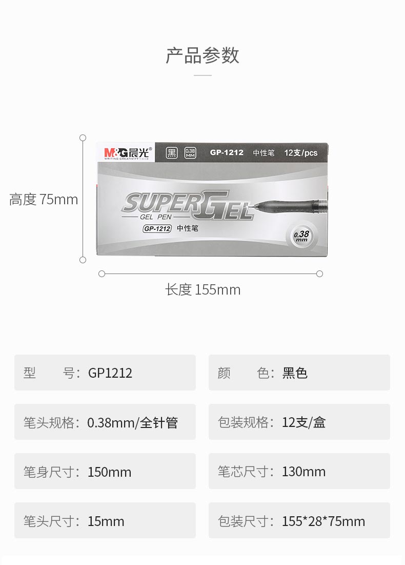■晨光GP1212水性笔0.38mm 黑色 12支装/盒 自营