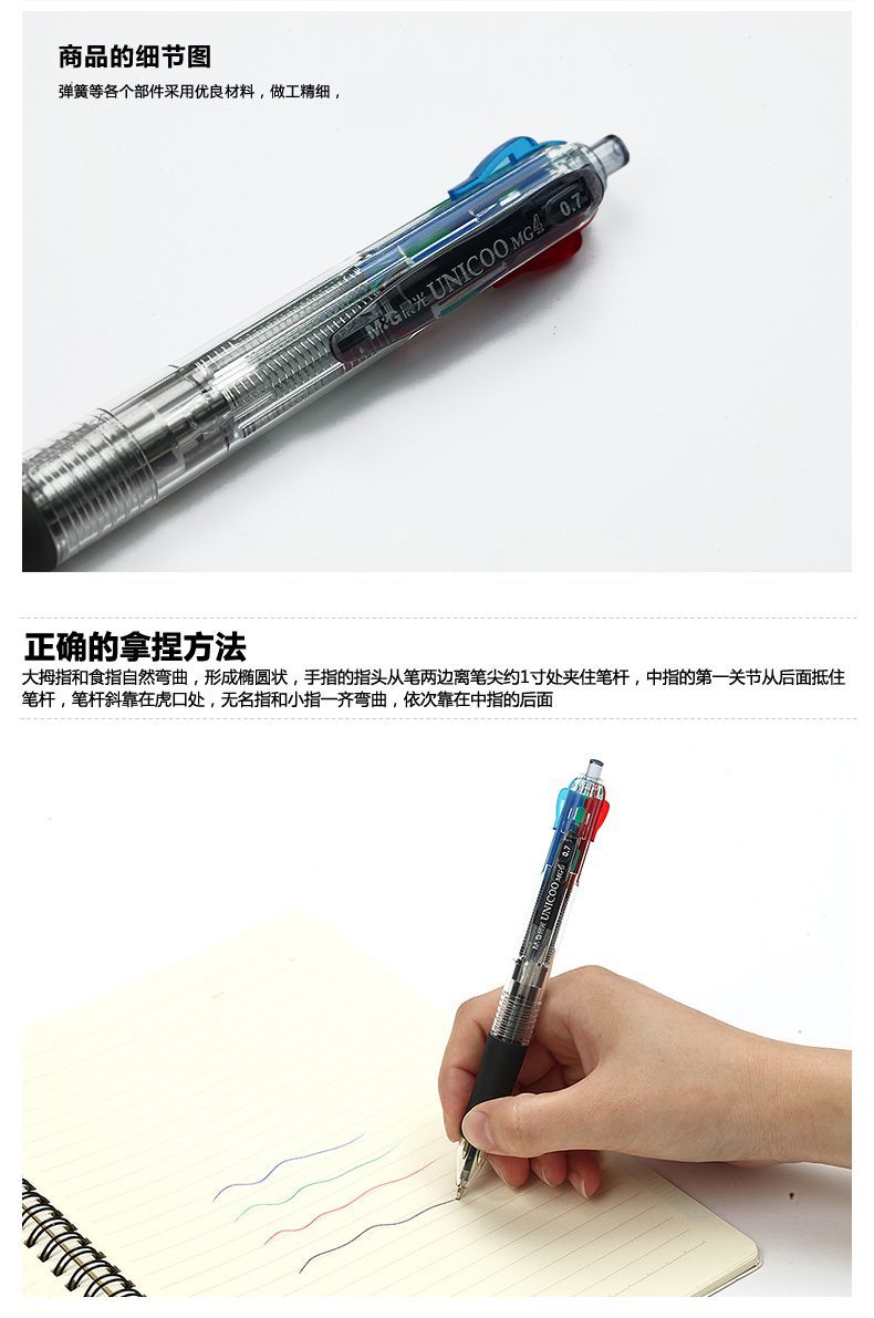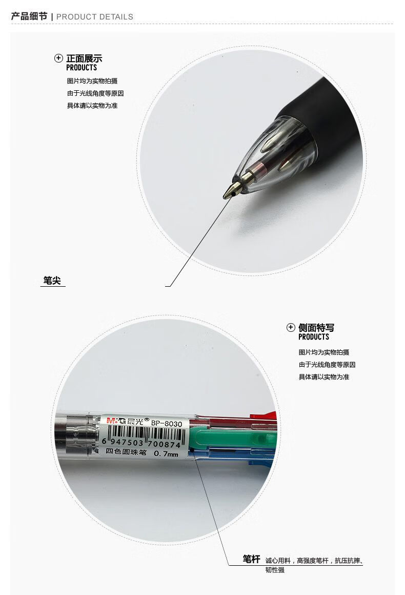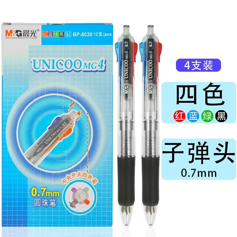 ■晨光多色圆珠笔中央开关四色0.7mm圆珠笔BP8030 3支 自营