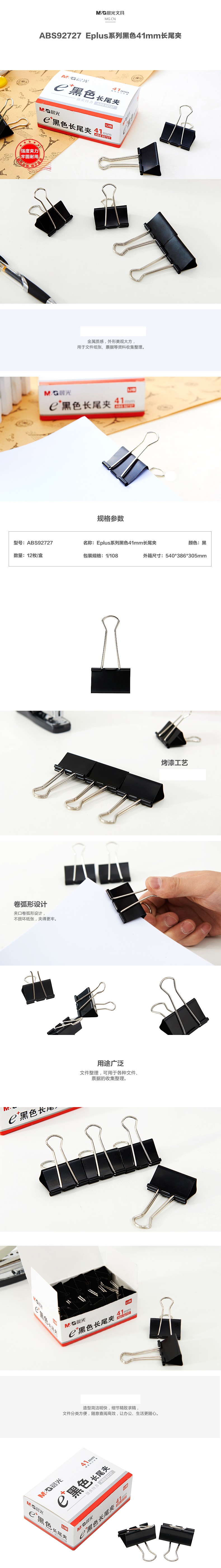 晨光Eplus黑色长尾夹41mm(盒装)ABS92727 自营