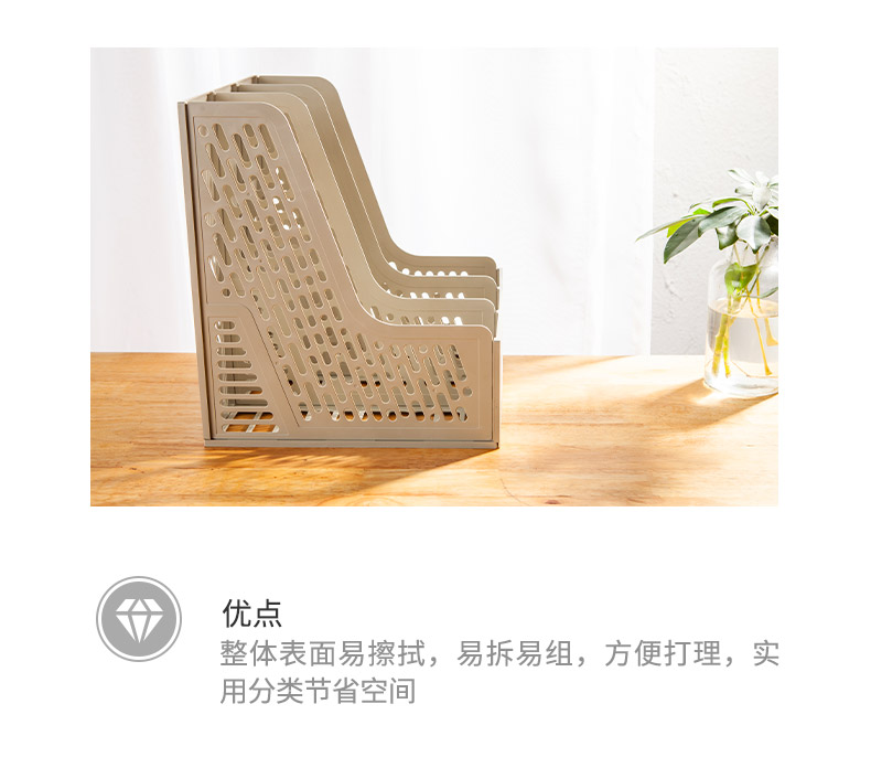 ■晨光(M&G)三联镂空桌面文件框 三栏带标签稳固文件栏/文件筐/资料框 灰色单个装ADMN4397 自营