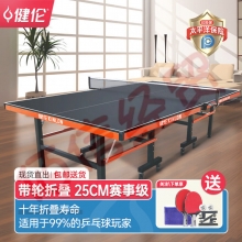 健伦 室内带轮折叠乒乓球桌25MM厚面板家用商用乒乓球台比赛级JL388S