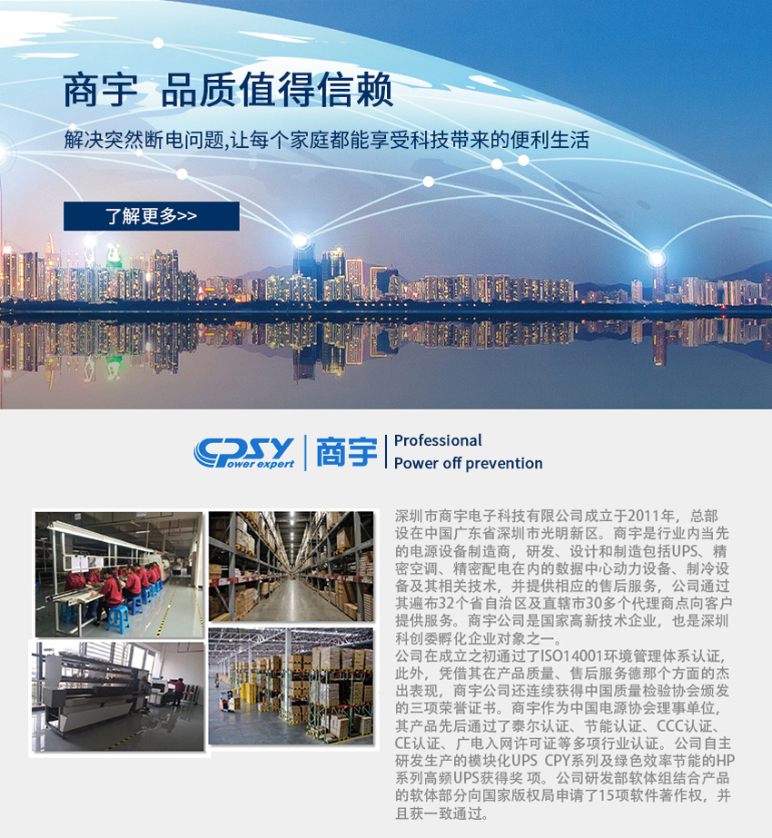 商宇UPS不间断电源 HP3330H在线式27kW高频机 机房应急稳压备用电源 SY21款 不包含电池需单独购买 续航8小时配192节100AH+6*A32电池柜