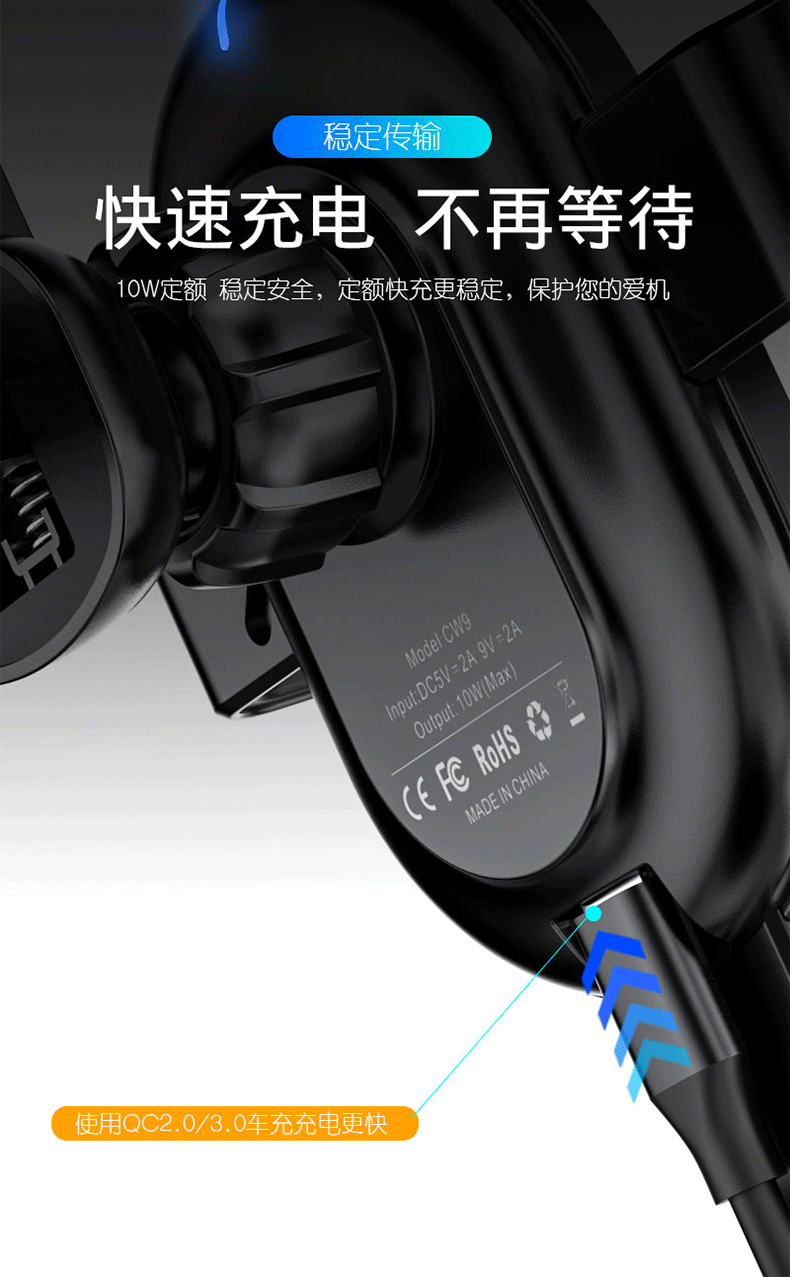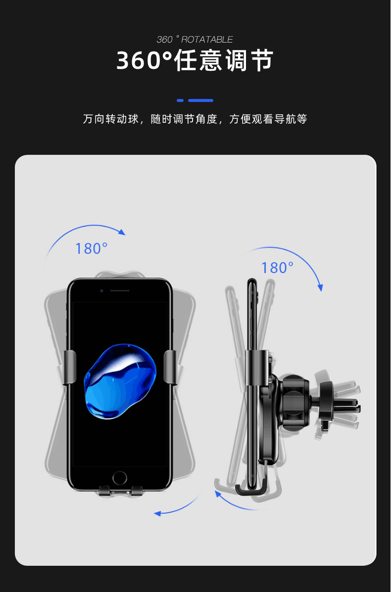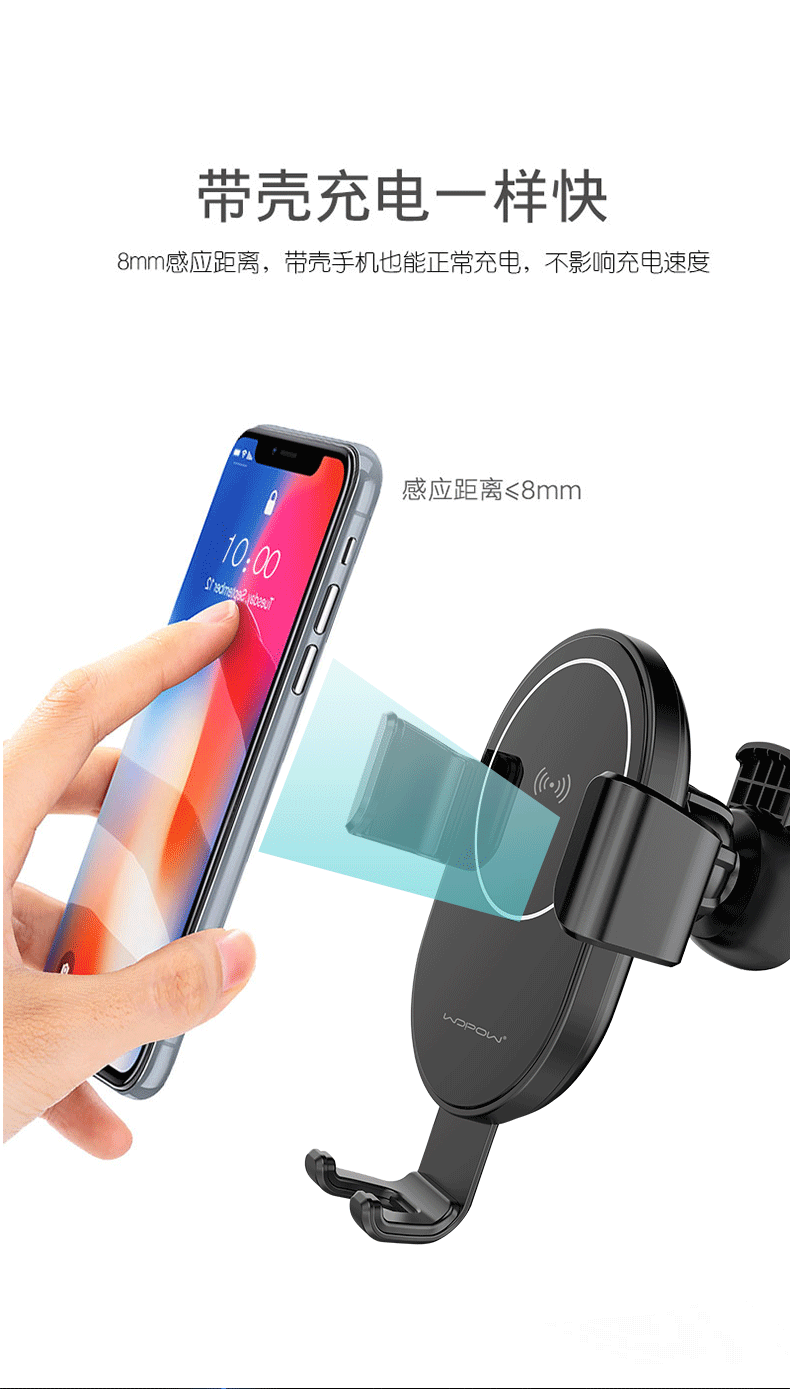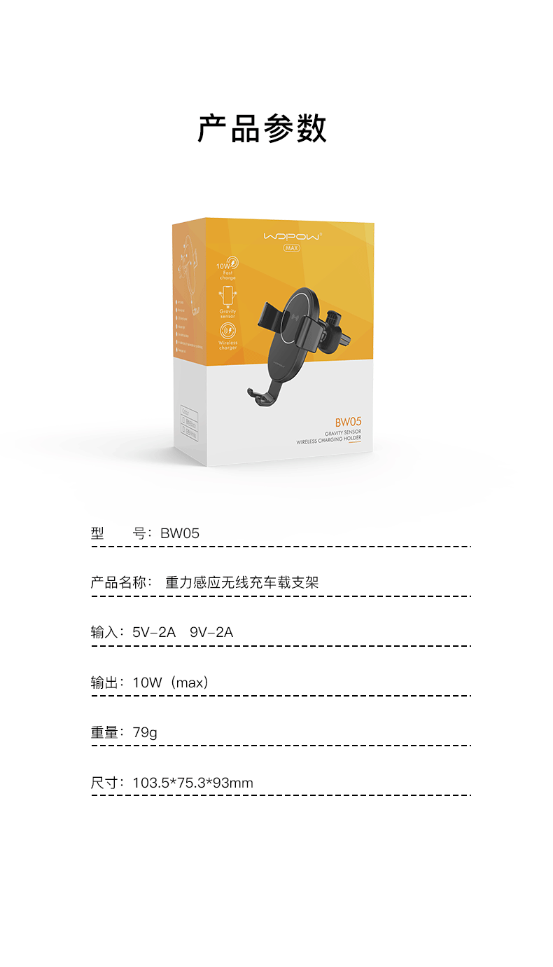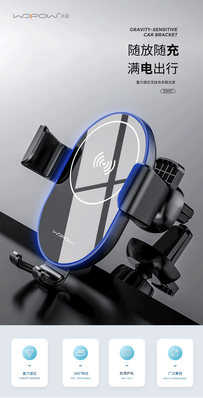 沃品(WOPOW)BW05 重力感应无线充车载支架 360°旋转车载无线充 黑色 自营