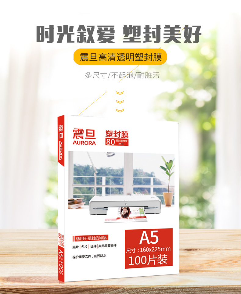 震旦AURORA A5-80MIC照片8寸透明高清专用护卡膜/塑封膜160*225mm(100张/包) 自营