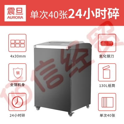 震旦AURORA 4级保密办公商用碎纸机(单次40张 持续24小时不停机 130L 可碎卡、光盘) AS40430CD 自营