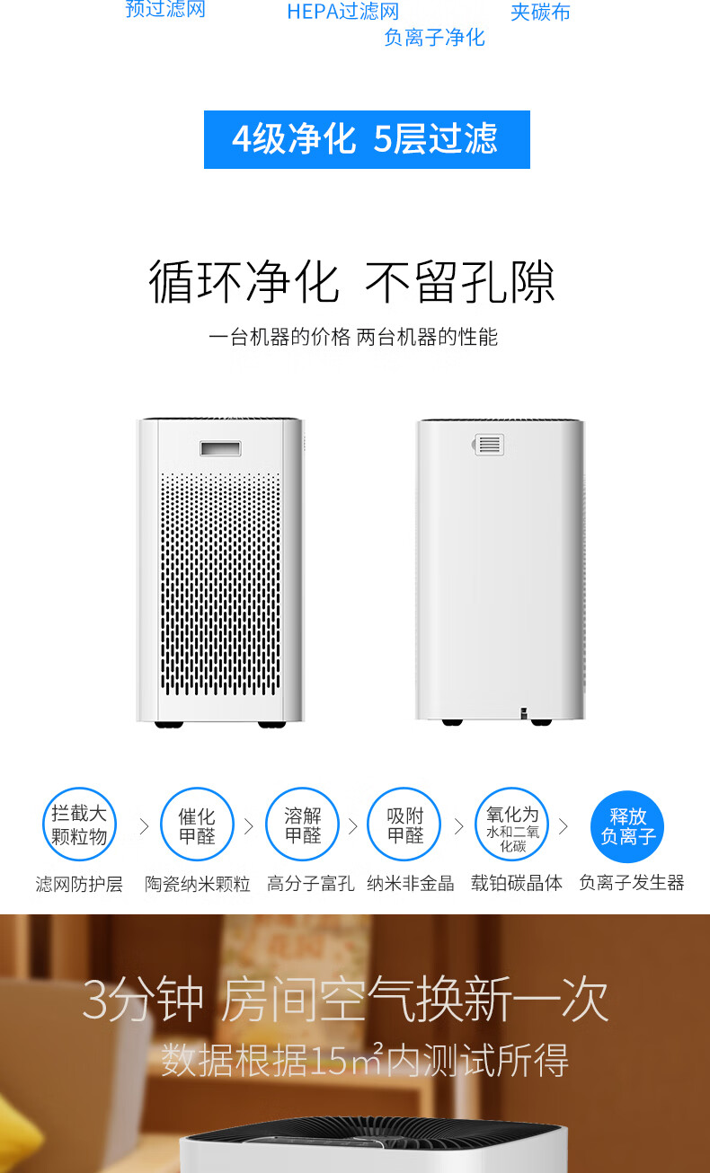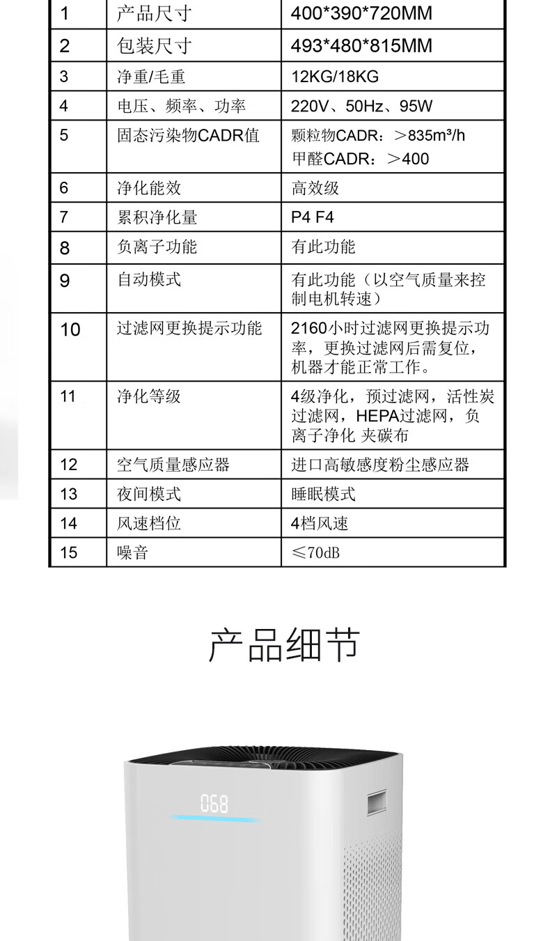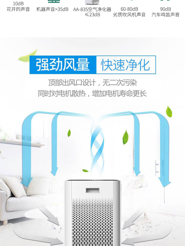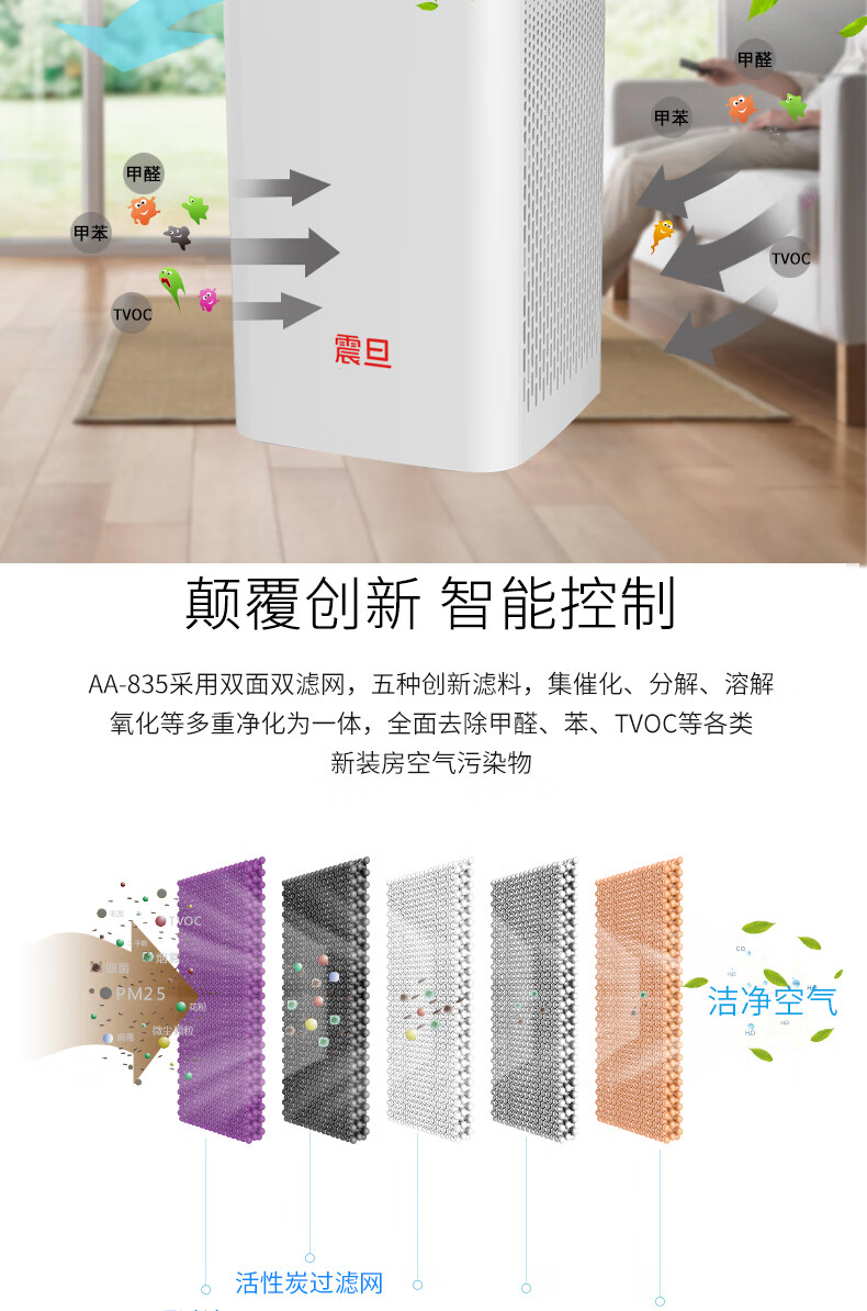 震旦AURORA 空气净化器 除甲醛/除雾霾/除菌/除花粉 颗粒物CADR(≥835m³/h) AA-835 自营
