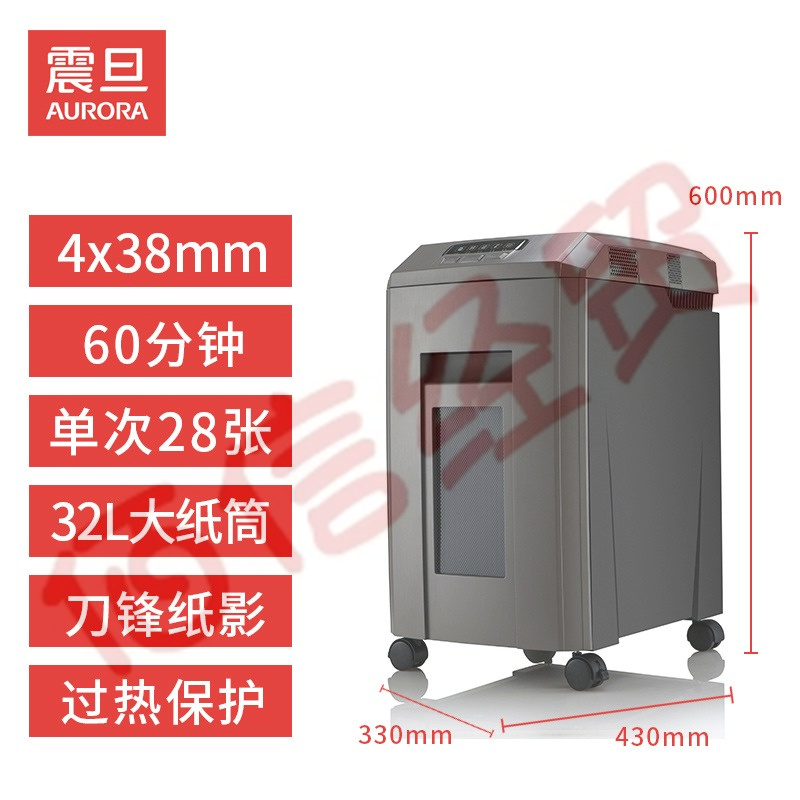 震旦AURORA 4级保密办公商用碎纸机(单次28张 持续60分钟 32L 可碎卡、光盘) AS2860CD 自营