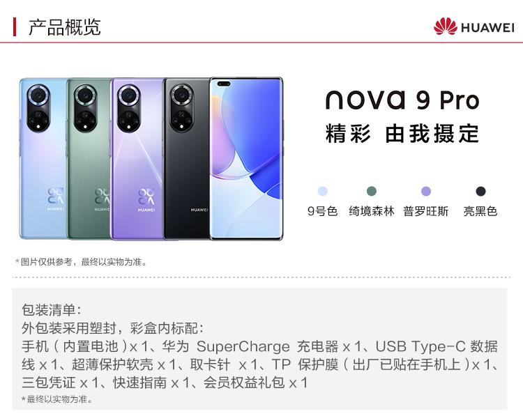 华为HUAWEI_nova_9_Pro_双3200万前置Vlog镜头_100W超级快充_10亿色臻彩屏_8GB+128GB_9号色华为手机 自营