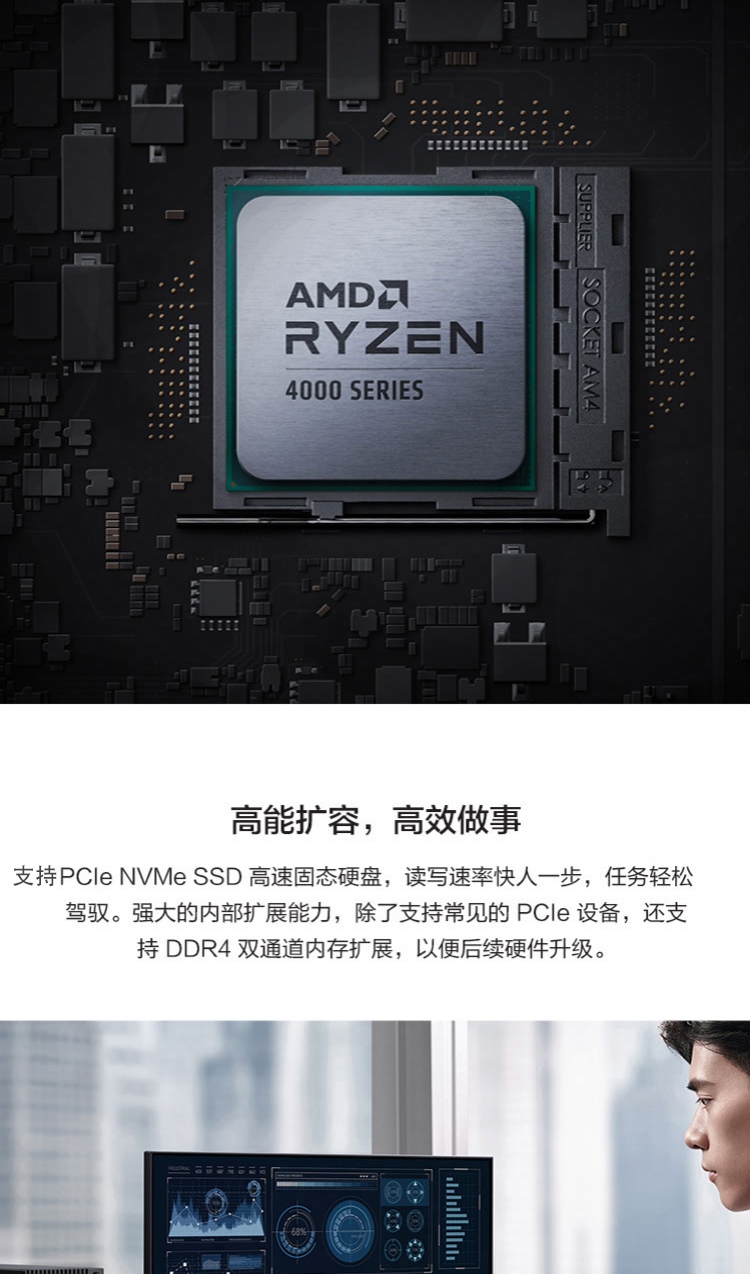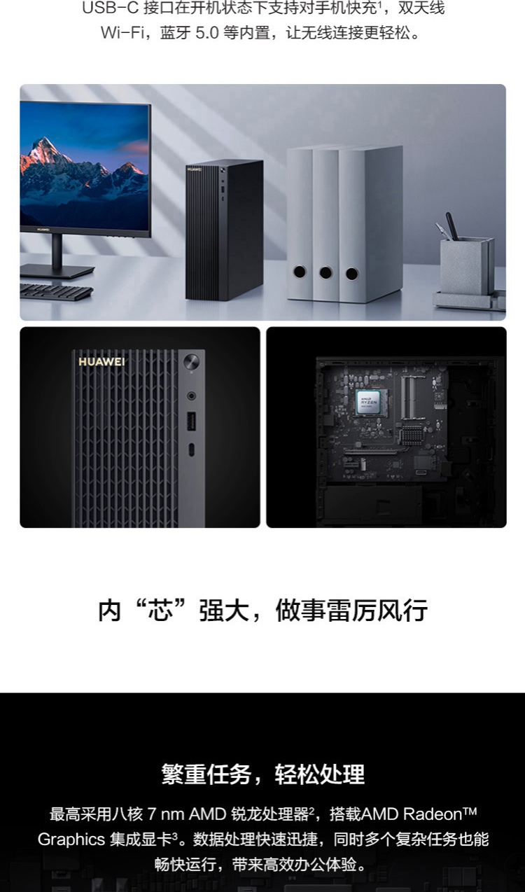 华为HUAWEI_ MateStation_B515_PUL-WDH9A商用台式电脑_(R5-4600G_8G_1TB_集显)+AD80HW显示器 自营