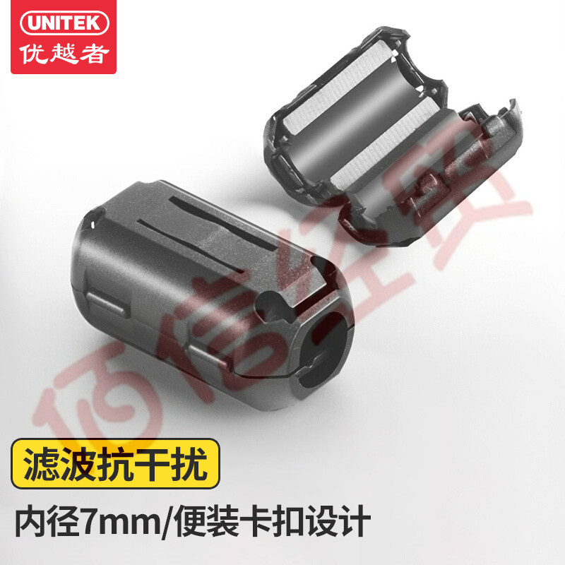 优越者(UNITEK)卡扣式抗干扰磁环内径7mm 可拆卸USB线串口线数据线屏蔽滤波磁环 Y-OT14BK 自营