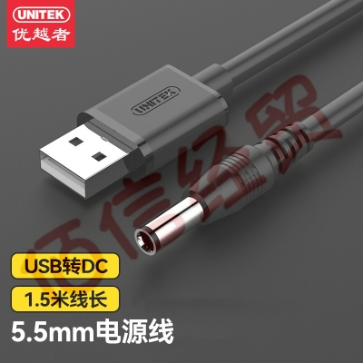优越者(UNITEK)USB电源线 路由器线电源线usb转DC5.5mm 适用部分打卡机/机顶盒网络/usb电源适配器 Y-C4046BK 自营