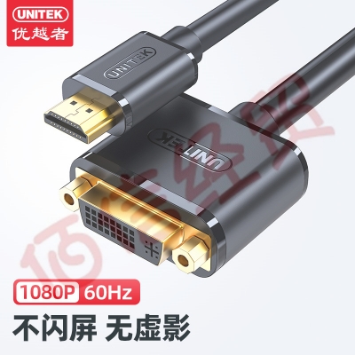优越者(UNITEK) HDMI公转DVI母转接线 HDMI转DVI-I数字高清双向转换连接线 电脑电视投影仪转换器Y-C250BK 自营
