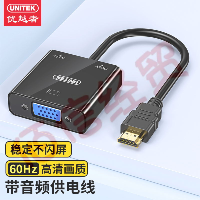 优越者 HDMI转VGA转换器 带供电音频 高清视频转接头 笔记本电脑电视盒子接电视显示器投影仪转换口 V128BBK 自营