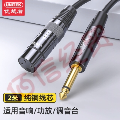 优越者6.5mm转卡农公对母话筒音频线 6.35卡侬线 麦克风调音台音响箱功放连接线2米 C9043BK 自营
