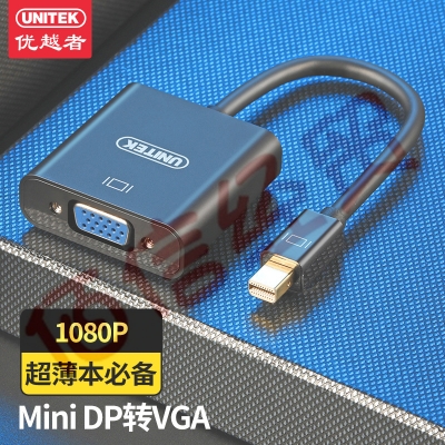 优越者(UNITEK)Mini DP转VGA转换器 苹果雷电接口投屏 迷你Displayport电脑显示器连接线黑色 Y-6336BK 自营