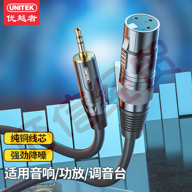 优越者3.5转卡侬母音频线手机电脑音响接声卡麦克风话筒调音台连接线 3.5mm公转卡农线母头1.5米 C9045BK 自营