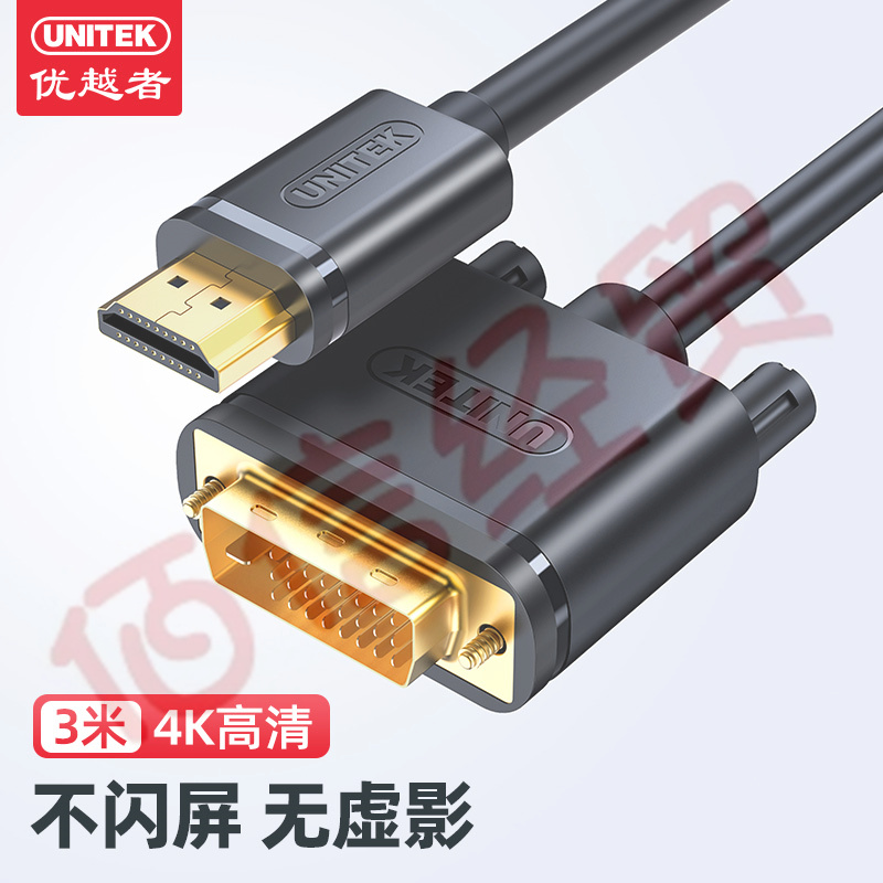 优越者(UNITEK)HDMI转DVI线 DVI转HDMI 4K高清线双向互转笔记本电脑机顶盒投影仪显示器连接线3米 Y-C219E 自营
