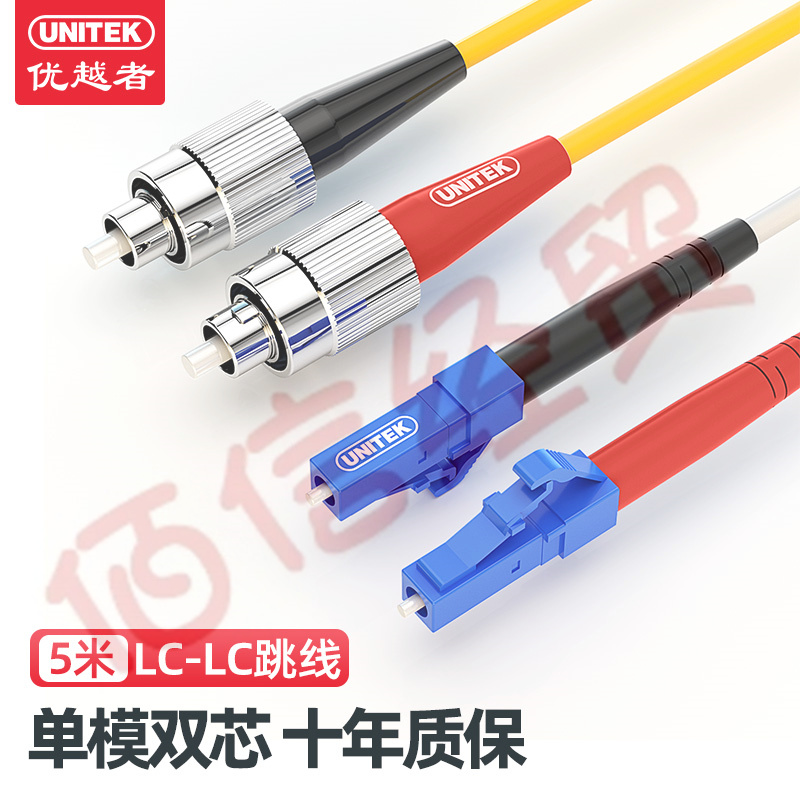 优越者(UNITEK)LC-FC单模双芯5米 电信级光纤跳线低烟无卤光纤线收发器尾纤 C8102YE 自营