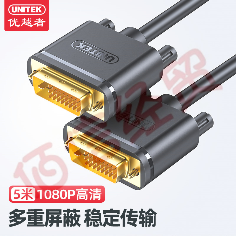 优越者(UNITEK)DVI连接线 DVI24+1转换线DVI-D公对公双通道数字高清连接线电脑显示器视频线5米 Y-C210A 自营