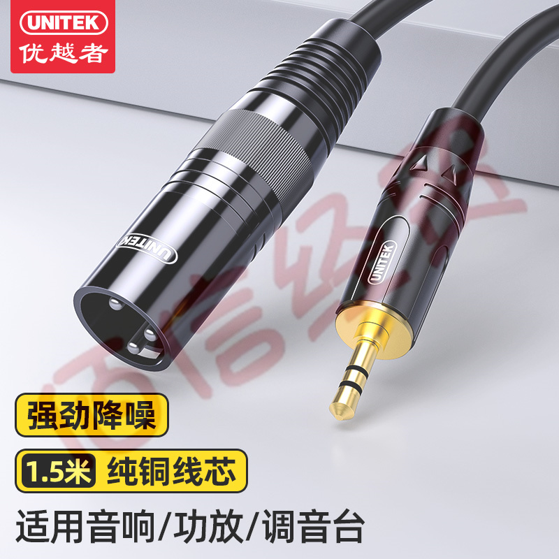 优越者3.5mm公转卡农公对公音频线 手机电脑声卡麦克风话筒调音台音箱卡侬连接线1.5米 C9046BK 自营
