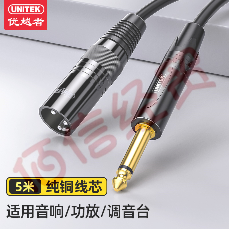 优越者卡侬线6.5mm转卡侬公音频线 6.35卡农线麦克风调音台音响箱功放公对公连接线5米 C9044BK 自营