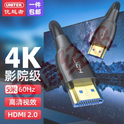 优越者 (UNITEK)HDMI线2.0版 电视盒子机顶盒显示器视频线 4K/3D数字电脑连接线 5米 C1041BK 自营