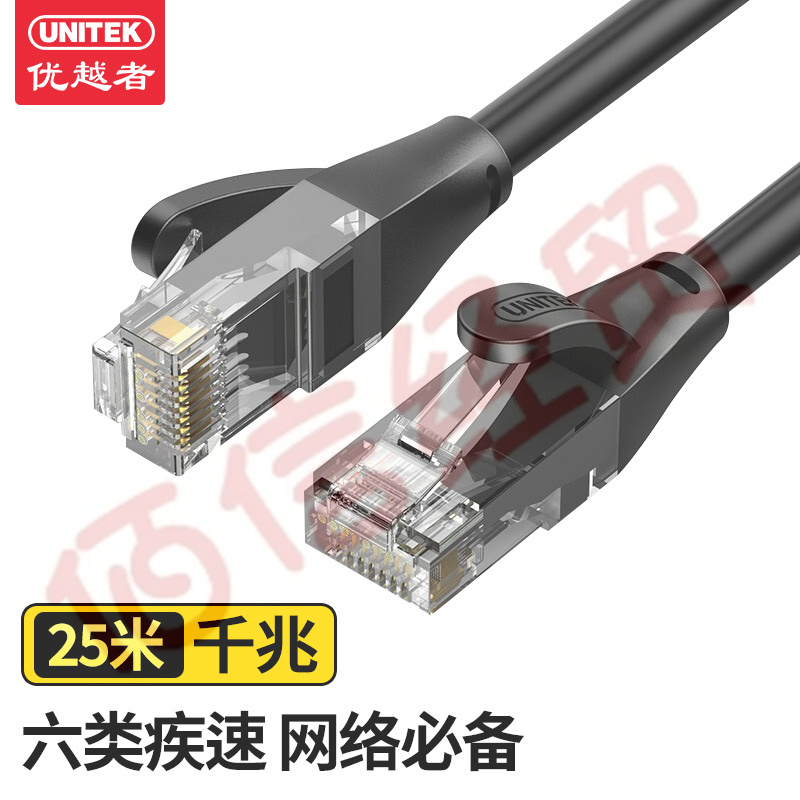 优越者(UNITEK)六类网线 Cat6千兆网络非屏蔽连接线 工程家用光纤宽带路由器8芯双绞跳线 C816FBK 25米 自营