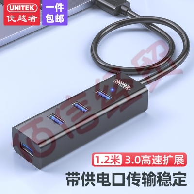 优越者 usb3.0分线器 高速4口拓展器 笔记本电脑一拖四转换器多接口延长线带电源口 黑色 1.2米 Y-3089ABK 自营
