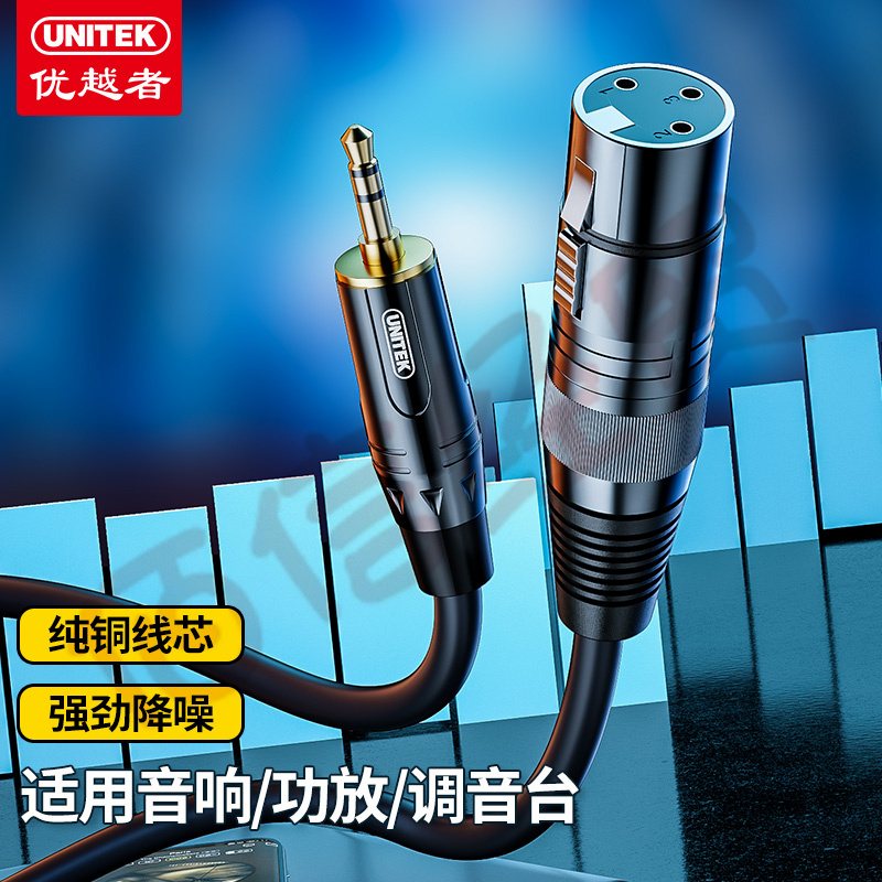 优越者3.5转卡侬母音频线 手机电脑音响接声卡麦克风话筒调音台连接线 3.5mm公转卡农线母头5米 C9045BK 自营