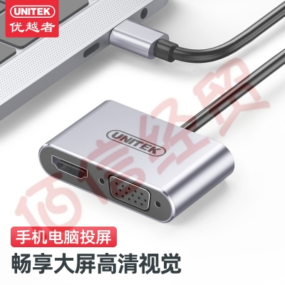 优越者(UNITEK)Type-C转HDMI扩展坞 华为手机连接电视投屏器 type c转VGA转接头 Macbook苹果电脑转换器V124A 自营