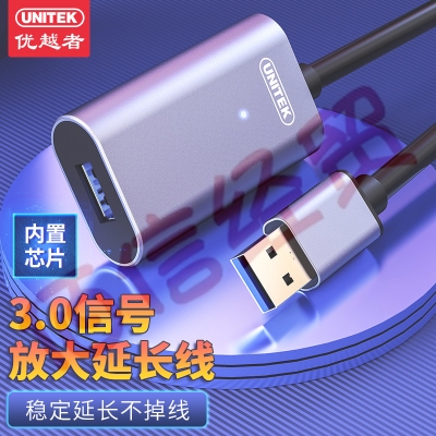 优越者(UNITEK)USB延长线3.0信号放大公对母铝合金 笔记本台式电脑打印机无线网卡摄像头5米延长线Y-3004BK 自营