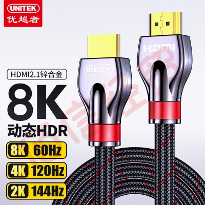 优越者(UNITEK)hdmi线2.1版 8K60Hz 4K120Hz 2K144Hz 笔记本电脑机顶盒接电视显示器投影仪高清视频连接线2米 自营