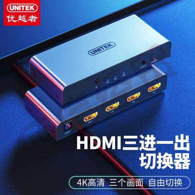 优越者(UNITEK)HDMI切换器三进一出 3进1出4K高清视频切屏器 笔记本电脑接电视投影仪共享显示器 V133A 自营