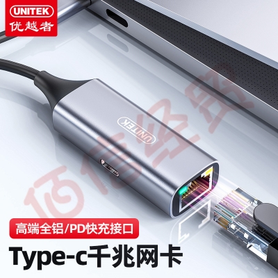 优越者(UNITEK)Type-C扩展坞 千兆网卡网口转换器苹果华为笔记本电脑PD供电款USB-C转rj45网线分线器 U323A 自营