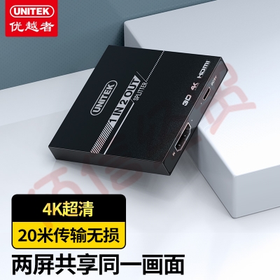 优越者(UNITEK) HDMI分配器一进二出 1进2出4K数字高清分屏器一分二笔记本电脑盒子连电视显示器投影仪V116A 自营