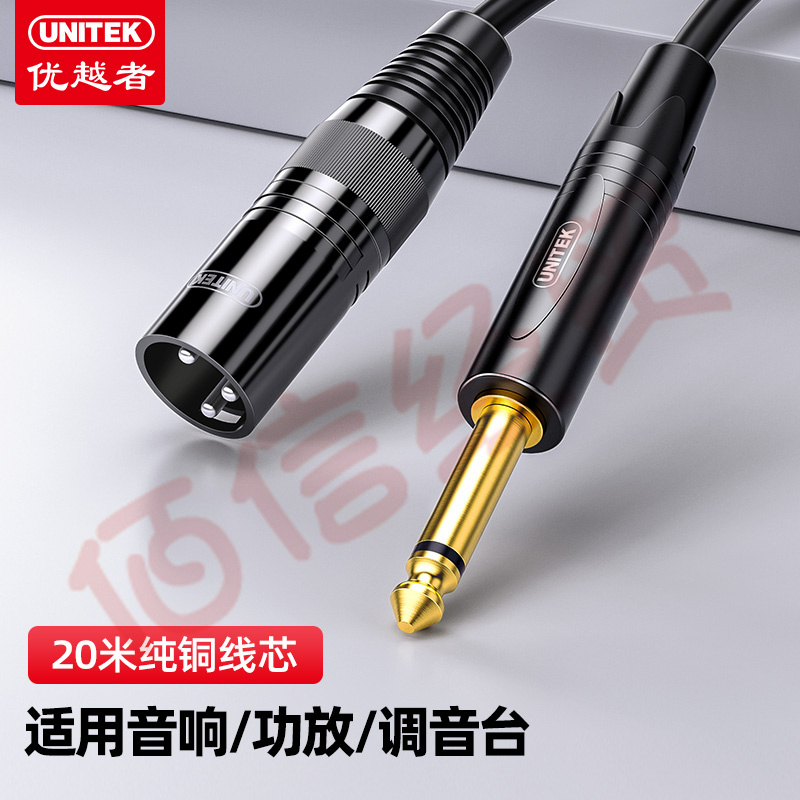 优越者卡侬线6.5mm转卡侬公音频线 6.35卡农线麦克风调音台音响箱功放公对公连接线20米 C9044BK 自营
