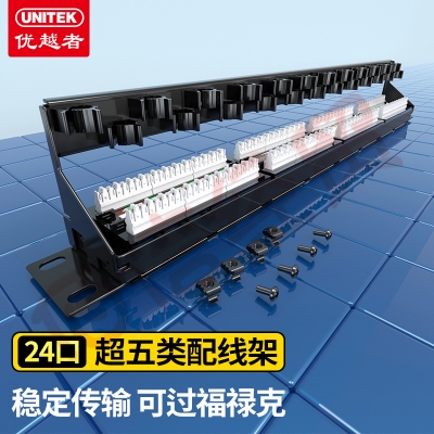 优越者(UNITEK)超五类网络配线架24口 CAT5E工程级镀金网络接口 1U机架式机柜网线配线架 T002A 自营