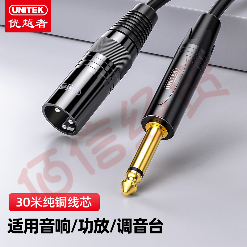 优越者卡侬线 6.35卡农线麦克风调音台音响箱功放6.5mm转卡侬公音频线公对公连接线30米 C9044BK 自营