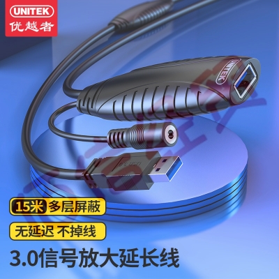 优越者(UNITEK)USB延长线3.0 电脑无线网卡打印机摄像头公对母带DC供电信号放大数据线usb延长器15米 Y-3003 自营