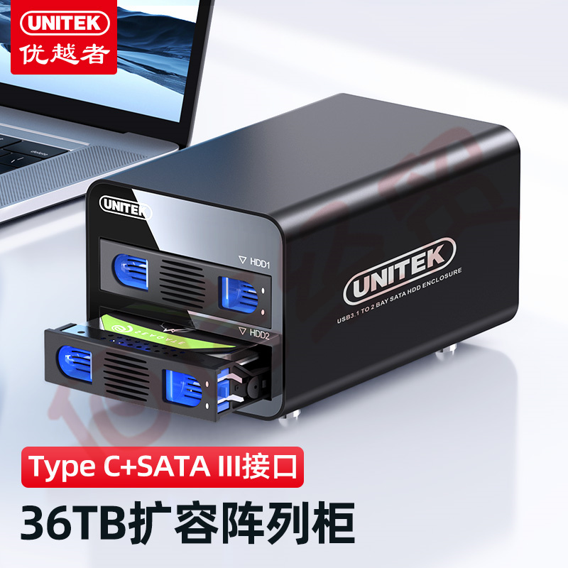 优越者 (UNITEK)磁盘阵列柜Type-C3.1高速带RAID硬盘柜双盘位2.5/3.5英寸机械/SSD固态电脑外接硬盘盒 S302A 自营